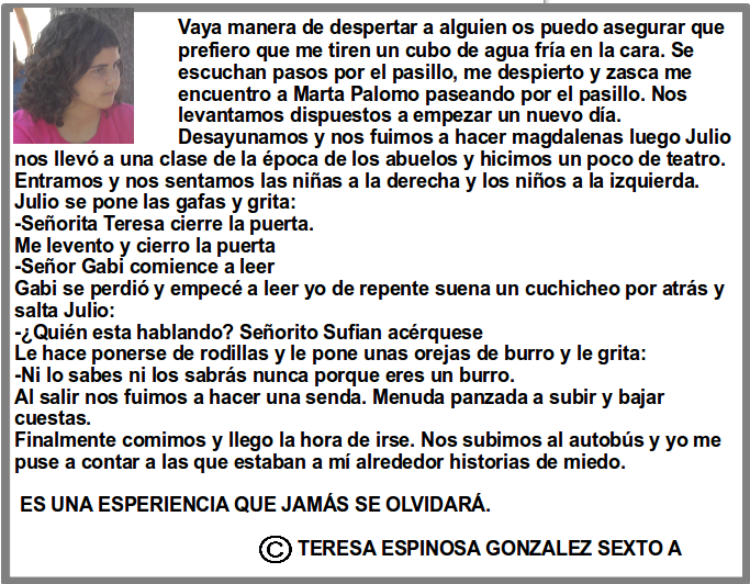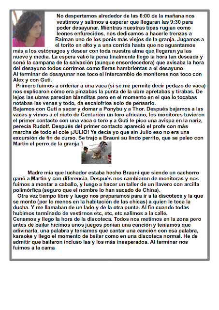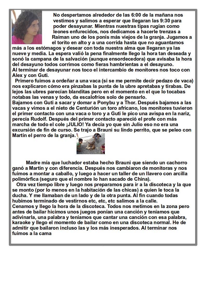 Salimos del colegio con mucha ilusión y ganas de pasarlo bien, sabíamos donde íbamos porque lo conocíamos, pero era nuestro viaje, nuestro premio; aquí estamos ya en 6º, parece que fue ayer cuando empezamos la primaria. Pero esa es otra historia, que ahora no os voy a contar, porque ahora estamos de viaje de fin de curso, y lo vamos a pasar genial.